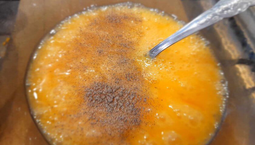 - Prepararea omletei: După ce ciupercile sunt gătite, poți adăuga ouăle bătute în tigaie. Începe să amesteci ușor cu o spatulă pentru a distribui uniform ciupercile. Lasă omleta să se gătească la foc mic până când ouăle se încheagă complet, dar nu uita să o verifici din când în când, pentru a preveni arderea.